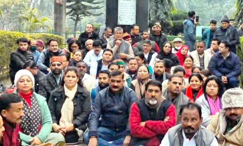 एक घंटे के सांकेतिक मौन उपवास पर बैठे पूर्व मुख्यमंत्री हरीश रावत