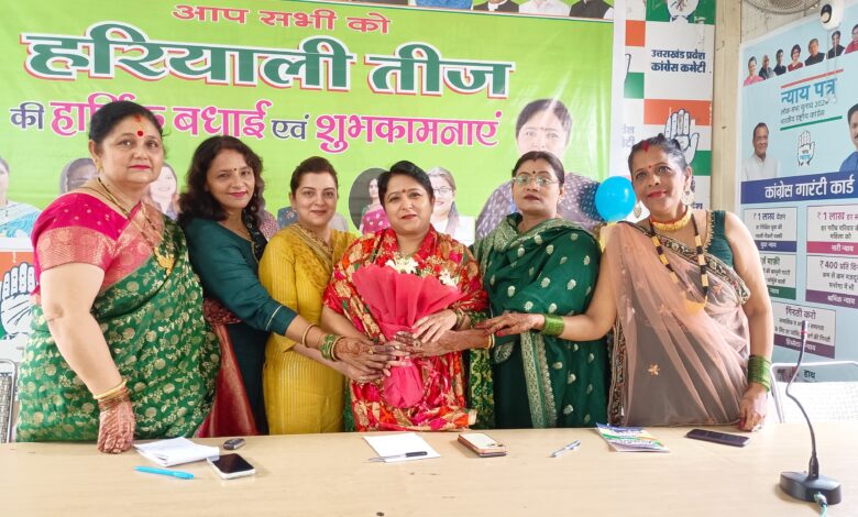 तीज कार्यक्रम के अवसर पर उत्तराखण्ड प्रदेश महिला कांग्रेस अध्यक्ष श्रीमती ज्योति रौतेला ने प्रदेश की मातृशक्ति को हरियाली तीज की बधाई देते हुए कहा कि महिलायें आज हर क्षेत्र में पुरूषों से आगे निकल चुकी हैं। देश का नेतृत्व कर चुकी महिलाओं का जिक्र करते हुए ज्योति रौतेला ने कहा कि महिलाओं में नेतृत्व की क्षमता पुरूषों से अधिक होती है। अनादिकाल से महिलायें समाज की पथ प्रदर्शक रही हैं उन्होंने समाज को एक नई दिशा देने का काम किया है। उन्होंने कहा कि विश्व में भारतीय नारियों का एक महत्वपूर्ण स्थान है, भारतीय नारियों ने हमेशा हर क्षेत्र में चाहे विज्ञान और तकनीक का क्षेत्र हो चाहे राजनीति का, हर क्षेत्र में कुशल नेतृत्व किया है। महिलाओं ने अंतरिक्ष में पहुंचने का कीर्तिमान भी स्थापित किया है। आज महिलायें प्रत्येक क्षेत्र में पुरूषों के कंधे से कंधा मिलाकर चल रही हैं। राजनीतिक क्षेत्र में भी महिलाएं आज पूरे विश्व में अग्रणी भूमिका का निर्वहन कर रही हैं। उन्होंने कहा कि उत्तराखण्ड राज्य आन्दोलन में मातृ शक्ति ने महत्वपूर्ण भूमिका का निर्वहन किया जिसे उत्तराखण्ड के इतिहास में सदैव याद किया जाता रहेगा। इस अवसर पर महिला कांग्रेस कार्यकर्ताओं द्वारा तीज गायन, मेंहदी, डांस एवं तीज क्वीन कैटवॉक प्रतियोगिता का आयोजन भी किया गया जिसमें महिलाओं ने बढचढ कर प्रतिभाग किया। प्रतियोगिता के विजेताओं को पुरस्कार भी वितरित किये गये।