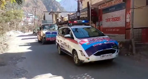 उत्तरकाशी। सड़क सुरक्षा माह 2025 के अंतर्गत यातायात पुलिस द्वारा उत्तरकाशी जिला मुख्यालय में सब्जी मण्डी, बस अड्डा, ज्ञानसू आदि क्षेत्रों में यातायात जागरुकता रैली निकालकर वाहन चालकों एवं आमजनता को यातायात नियमों की व्यापक जानकारी देते हुये सड़क सुरक्षा के प्रति जागरुक किया गया। इस दौरान टीम द्वारा वाहन चालकों व राहगिरों को यातायात नियमों शराब पीकर वाहन न चलाने,ओवर लोडिंग न करने, बिना हेलमेट दोपहिया वाहन न चलाने, ओवरस्पीड, तीन सवारी, आदि के सम्बन्ध में जानकारी देते हुये जागरुक किया गया, सभी गुड सेमेरिटन की जानकारी देते हुये सड़क दुर्घटना के दौरान घायलों की मदद हेतु प्रेरित किया गया। इस दौरान याताायात की टीम द्वारा लोगों को सड़क सुरक्षा सम्बन्धी पम्पलेट भी वितरित किये गये।