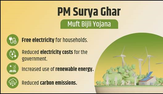 परिवारों के लिए मुफ्त बिजली: यह योजना सब्सिडी वाले छतों पर सौर पैनल लगाने के माध्यम से परिवारों को मुफ्त बिजली प्रदान करती है, जिससे उनकी ऊर्जा लागत में काफी कमी आती है।