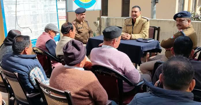 रुद्रप्रयाग। नवनियुक्त पुलिस उपाधीक्षक रुद्रप्रयाग ने कस्बा रुद्रप्रयाग के व्यापार मण्डल तथा सीएलजी सदस्यों के साथ गोष्ठी की। आज नवनियुक्त पुलिस उपाधीक्षक रुद्रप्रयाग विकास पुण्डीर की अध्यक्षता व प्रभारी निरीक्षक कोतवाली रुद्रप्रयाग मनोज नेगी की उपस्थिति में कोतवाली रुद्रप्रयाग में क्षेत्र के गणमान्य व्यक्तियों, व्यापार मंडल तथा सीएलजी सदस्यों के साथ गोष्ठी कर संवाद स्थापित किया गया। उनके द्वारा क्षेत्र की समस्याओं के बारे में सुझाव लिए गए तथा सभी लोगों से सहयोग की अपेक्षा की गई। उपस्थित गणमान्य लोगों द्वारा पुलिस को सहयोग देने का आश्वासन दिया गया। पुलिस उपाधीक्षक ने सभी से किराएदार व बाहरी व्यक्तियों का सत्यापन कराने के सम्बन्ध में अपील की गई, इसके अतिरिक्त यातायात व्यवस्था को सुचारु बनाए रखने हेतु, सड़क पर अनावश्यक अतिक्रमण न करने, बिना पुलिस सत्यापन व अनुमति के फड़-फेरी व रेड़ी-ठेली न लगाने, दुकानों में काम कर रहे बाहर से आये श्रमिकों का अनिवार्य रूप से पुलिस सत्यापन करवाने के निर्देश दिये। गोष्ठी में आये सभी लोगों से कानून एवं शान्ति व्यवस्था बनाए रखने में पुलिस का सहयोग करने की अपील की गयी। आयोजित गोष्ठी के अवसर पर व्यापार मंडल अध्यक्ष रुद्रप्रयाग राय सिंह बिष्ट, क्षेत्र के गणमान्य नागरिक चंद्र मोहन सेमवाल (जिला महामंत्री व्यापार मंडल रुदप्रयाग), सभासद अंकुर खन्ना, माधो सिंह नेगी, प्रदीप बगवाड़ी, अब्दुल रहीम उर्फ पप्पू भाई, श्रीमती सुशीला बिष्ट पूर्व सदस्य जिला पंचायत रुद्रप्रयाग वरिष्ठ उपनिरीक्षक कोतवाली रुद्रप्रयाग राजीव चौहान, उपनिरीक्षक रणजीत खनेड़ा, उप निरीक्षक जसपाल सिंह, अपर उपनिरीक्षक यशपाल सिंह मौजूद रहे।