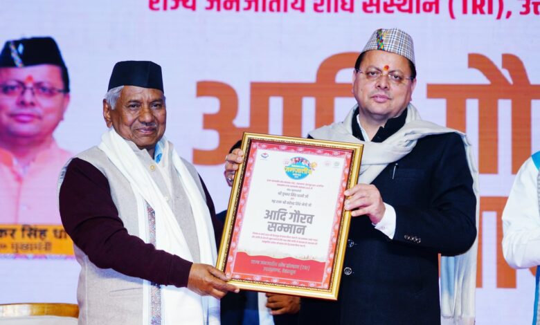 देहरादून। मुख्यमंत्री पुष्कर सिंह धामी ने आज परेड ग्राउंड देहरादून में राज्य जनजातीय शोध संस्थान द्वारा आयोजित उत्तराखण्ड जनजातीय महोत्सव-2025 कार्यक्रम में प्रतिभाग किया। इस अवसर पर मुख्यमंत्री ने उत्तराखण्ड आदि गौरव सम्मान पुरस्कार – 2025 से लोक गायक नरेंद्र सिंह नेगी एवं किशन महीपाल को सम्मानित किया। इस दौरान मुख्यमंत्री ने जनजातीय शोध संस्थान के सफल संचालन हेतु जनजातीय शोध संस्थान के ढांचे को स्वीकृति प्रदान करने और जनजातीय युवक-युवतियों को आत्मनिर्भर बनाने तथा रोजगार की दिशा में काम करने हेतु मुख्यमंत्री जनजाति रोजगार उत्कर्ष योजना के संचालन के लिये प्रतिवर्ष 1 करोड़ रुपए की धनराशि दिए जाने की घोषणा की। मुख्यमंत्री ने देशभर के विभिन्न जनजाति समाज द्वारा बनाए गए उत्पादों पर आधारित स्टॉलों का भी अवलोकन किया। उन्होंने जनजातीय शोध संस्थान द्वारा किए गए कार्यों पर आधारित लघु फिल्म का भी अवलोकन किया। मुख्यमंत्री ने कहा कि जनजातीय महोत्सव, प्रदेश के सांस्कृतिक वैभव और जनजातीय परंपराओं को जीवंत रखने का प्रयास है। ऐसे आयोजनों से हमें जनजातीय समाज की समृद्ध परंपराओं को देखने, समझने और उनसे प्रेरणा लेने का अवसर मिलता है। उन्होंने कहा कि उत्तराखण्ड की भूमि प्राकृतिक सौंदर्य के साथ समृद्ध सांस्कृतिक विरासत के लिए भी जानी जाती है। हमारे राज्य में मुख्य रूप से थारू, भोटिया, जौनसारी राजी एवं वोक्सा जनजातियां निवास करती हैं। जिनकी परंपराएं, लोक कला, हस्तशिल्प, लोक गीत, नृत्य और खानपान हमारी संस्कृति को अद्वितीय पहचान देते हैं। राज्य सरकार उत्तराखण्ड में आदिवासी समाज के विकास के लिए रात-दिन कार्य करती रहेगी। उन्होंने कहा कि राज्य सरकार, उत्तराखण्ड के आदिवासी एवं जनजातीय समुदाय के कल्याण और उनके जीवन स्तर को बेहतर बनाने की दिशा में कार्य कर रही है। प्रधानमंत्री जनजातीय उन्नत ग्राम अभियान के अंतर्गत उत्तराखण्ड के 128 जनजातीय गांवों का चयन किया गया है। चयनित गांवों में बुनियादी सुविधाओं के विकास को बढ़ावा दिया जा रहा है। राज्य में 4 एकलव्य आदर्श आवासीय विद्यालय कालसी, मेहरावना, बाजपुर व खटीमा में संचालित हो रहे हैं, जिसमें जनजातीय समुदाय के छात्रों को निःशुल्क शिक्षा एवं हॉस्टल की सुविधा प्रदान की जाती है। जनजातीय समाज के बच्चों को प्राइमरी स्तर से स्नातकोत्तर स्तर तक छात्रवृत्ति प्रदान की जा रही है। शैक्षिक उत्थान एवं विकास हेतु सरकार द्वारा वर्तमान में 16 राजकीय आश्रम पद्धति विद्यालयों का संचालन किया जा रहा है। जनजाति के शिक्षित बेरोजगार युवक-युवतियों को तकनीकी शिक्षा प्रदान करने हेतु प्रदेश में तीन आई.टी.आई. संस्थानों का संचालन किया जा रहा है। प्रतियोगी पर