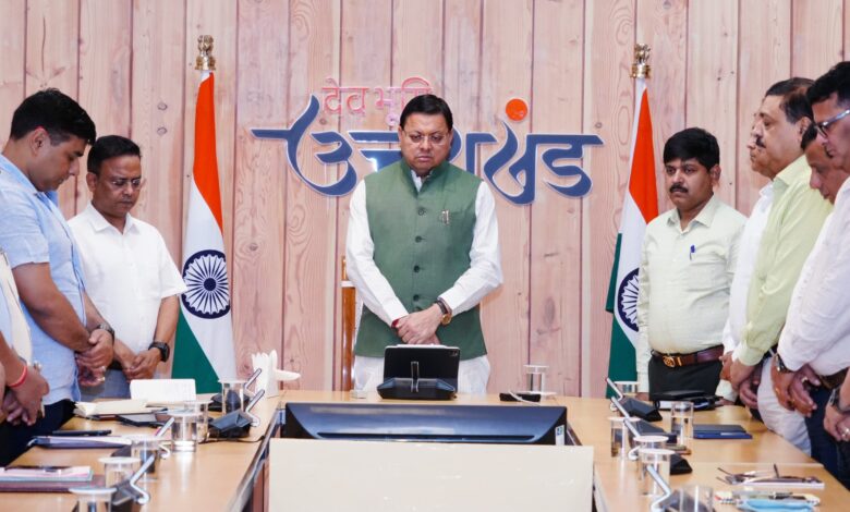 देहरादून 23 अप्रैल। मुख्यमंत्री पुष्कर सिंह धामी की अध्यक्षता में आज सीएम आवास में आयोजित प्रातः कालीन बैठक में दो मिनट का मौन रखकर जम्मू-कश्मीर के पहलगाम में पर्यटकों पर हुए कायराना आतंकी हमले में मारे गए निर्दोष लोगों को श्रद्धांजलि अर्पित की गई। मुख्यमंत्री ने हमले में अपने प्रियजनों को खोने वाले परिवारों के प्रति गहरी संवेदना व्यक्त करते हुए कहा, “उत्तराखंडवासियों की ओर से मैं शोक संतप्त परिवारों के साथ अपनी पूरी संवेदना प्रकट करता हूँ। यह कायराना हमला केवल निर्दोष लोगों पर नहीं, बल्कि हमारे देश की संस्कृति, शांति और मानवता के मूल्यों पर भी हमला है।“ मुख्यमंत्री ने कहा कि आतंकियों की जम्मू-कश्मीर को अशांत करने की कोशिशें कभी सफल नहीं होंगी। इस कुकृत्य का मुँहतोड़ जवाब दिया जाएगा और दोषियों को बख्शा नहीं जाएगा।