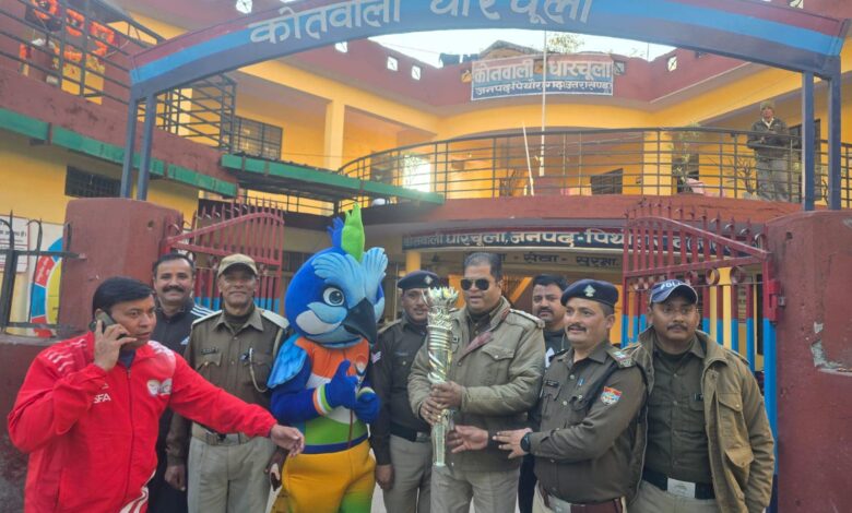 पिथौरागढ़। “नशा मुक्त देवभूमि मिशन” को सफल बनाने में जनपद पिथौरागढ़ पुलिस लगातार जुटी है। पुलिस अधीक्षक श्रीमती रेखा यादव के मार्गदर्शन और क्षेत्राधिकारी परवेज अली के पर्यवेक्षण में, पिथौरागढ़ जिले के विभिन्न क्षेत्रों में जागरूकता अभियान चलाया जा रहा है। जिस क्रम में प्रभारी निरीक्षक विजेन्द्र शाह के नेतृत्व में पुलिस टीम द्वारा थाना क्षेत्र में नशा मुक्ति अभियान के तहत जागरूकता रैली आयोजित कर नशे के दुष्परिणामों उनसे बचने के उपायों के सम्बन्ध में विस्तृत जानकारी दी गयी । इस दौरान पिथौरागढ़ जिले में 28 जनवरी से प्रारंभ होने वाले 38वें राष्ट्रीय खेलों की मशाल रैली का धारचुला पहुँचने पर पुलिस ने स्वागत किया। यह मशाल देश भर में राष्ट्रीय खेलों के प्रचार-प्रसार हेतु यात्रा कर रही है।