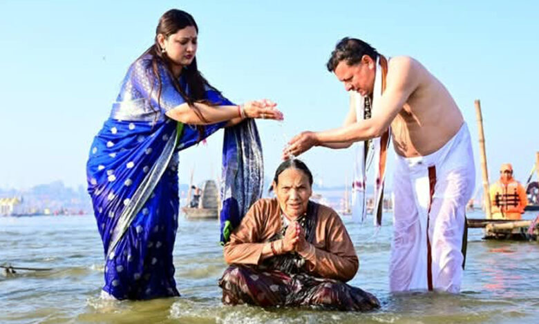 अविस्मरणीय क्षण : सीएम ने महाकुंभ में त्रिवेणी संगम के पावन जल में कराया माता को स्नान