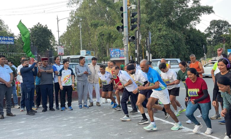 मुख्य अतिथि एवं विशिष्ट अतिथि द्वारा अलग-अलग आयु वर्ग के प्रतिभागियों को हरी झंडी दिखाकर मैराथन दौड़ का शुभारंभ किया गया।