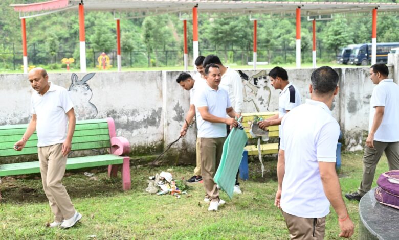 उत्तरकाशी। जिला विधिक सेवा प्राधिकरण उत्तरकाशी के तत्वावधान में ‘स्वच्छ भारत, स्वस्थ भारत’ अभियान के अन्तर्गत आयोजित कार्यक्रम मे सहभागिता करते हुये आज उत्तरकाशी पुलिस द्वारा पुलिस लाइन ज्ञानसू परिसर, फायर स्टेशन लदाडी सहित अन्य स्टेशन व शाखाओं पर वृहत स्तर स्वच्छता अभियान चलाकर साफ-सफाई की गयी। जनमानस को स्वच्छ भारत, स्वस्थ भारत का सन्देश दिया गया। स्वच्छता अभियान मे पुलिस जवानों द्वारा उत्साहपूर्वक भाग लेकर श्रमदान किया गया। श्रमदान के उपरान्त सभी जवानों द्वारा स्वच्छता का संकल्प लिया गया। सभी ने संकल्प लिया कि हम न केवल अपने आस-पास सफाई रखेंगे, बल्कि दूसरों को भी इसके लिए प्रेरित करेंगे। स्वच्छता व साफ-सफाई को अपनी दैनिक दिनचर्या का हिस्सा बनाएंगे।