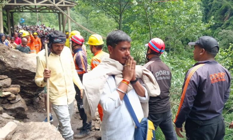 रुद्रप्रयाग, 04 जुलाई। जनपद रुद्रप्रयाग में केदारनाथ धाम की यात्रा सुचारु हो गयी है। आज प्रातःकाल सोनप्रयाग शटल पार्किंग क्षेत्रान्तर्गत गिरे बोल्डर इत्यादि की सफाई करने के उपरान्त मार्ग आवागमन हेतु सुचारु किया जा चुका था। परन्तु गौरीकुण्ड से लगभग एक किलोमीटर आगे छौड़ी गधेरे नामक स्थान पर बोल्डर, मलबा-पत्थर आने से पैदल मार्ग पूरी तरह से बाधित होने पर यात्रियों की सुरक्षा के दृष्टिगत पैदल यात्रा को अस्थायी तौर पर रोका गया था। सम्बन्धित कार्यदायी संस्था लो.नि.वि. के स्तर को इस मार्ग को खोले जाने की कार्यवाही के उपरान्त यहां पर दोनो छोरों पर रुके यात्रियों को सुरक्षा बलों की उपस्थिति में आर-पार कराया जा रहा है। सोनप्रयाग क्षेत्रान्तर्गत रोके गये यात्रियों को गौरीकुण्ड की तरफ भिजवाते हुए केदारनाथ धाम यात्रा को पुनः सुचारु किया गया है।