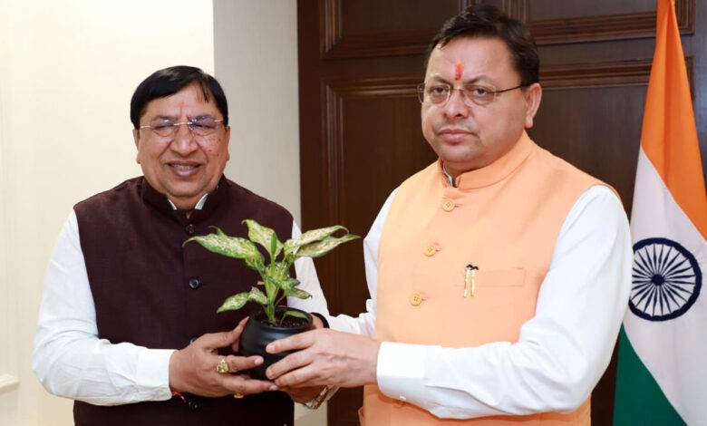 देहरादून। भाजपा राष्ट्रीय सह-कोषाध्यक्ष व सासंद राज्यसभा डा.नरेश बंसल की उत्तराखंड निवास नई दिल्ली में मुख्य मंत्री उत्तराखंड पुष्कर सिंह धामी से शिष्टाचार भेंट हुई। मुख्यमंत्री का शौल उड़ाकर स्वागत किया गया व माननीय मुख्यमंत्री पुष्कर सिंह धामी ने भी डा. नरेश बंसल को हाउस को हिमालयाज का हैमपर व पौधा भेंट किया व शौल उड़ाया। इस दौरान दोनो नेताओ मे उत्तराखंड राज्य से संबंधित वर्तमान सामाजिक, राजनीतिक एवं विकासात्मक अध्ययन एवं गंभीर सकारात्मक चर्चा हुई। बैठक में विशेष रूप से राज्य के पर्वतीय कल्याण क्षेत्रों में अनुसंधान संस्थानों के विकास, युवा, स्वास्थ्य सेवाओं के संचार, और शिक्षा की गुणवत्ता में सुधार जैसे अहम विषयों पर विचार-विमर्श किया गया। इसके अतिरिक्त, केंद्रीय अधिसूचना के राज्य में प्रभावशाली संविधान, सुदूरवर्ती उत्तराखंडवासियों के हितों की रक्षा और क्षेत्रीय क्षेत्रों में आर्थिक ढांचे को बढ़ावा देने जैसे विषयों पर भी सुझाव साझा किए गए। डा. नरेश बंसल ने मुख्यमंत्री से कांवड़ यात्रा व पर्यटन संख्या को देखते हुए नव निर्मित देहरादून-दिल्ली हाईवे का मोहंड का हिस्सा खोलने का आग्रह किया व कावंड यात्रा सुचारू रूप से चले व कावंडीयो की श्रद्धा से खिलवाड न हो व प्रशासनिक सहयोग मिले का निवेदन किया जिसे मुख्यमंत्री ने सहर्ष स्वीकार कर कार्यवाई के निर्देश दिए।