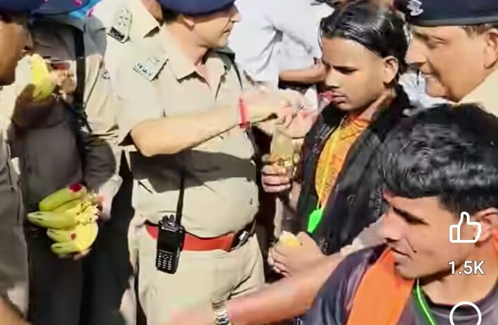 एसएसपी ने पुष्पवर्षा कर कांवड़ियों को बांटे शीतल पेय और फल