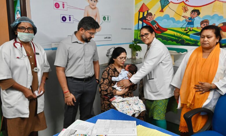 आधुनिक टीकाकरण केंद्र में सीडीओ ने कराया अपने डेढ़ माह बेटे का टीकाकरण