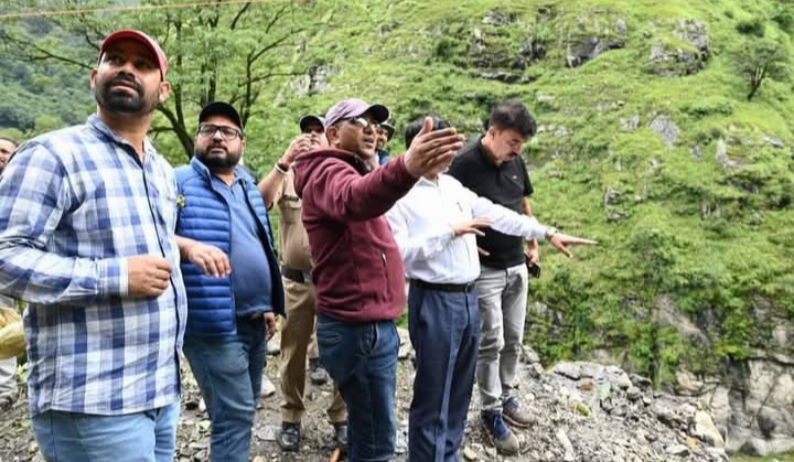 स्यानाचट्टी से आगे जंगल चट्टी में मार्ग का लगभग 200 मीटर हिस्सा क्षतिग्रस्त होने से यातायात बाधित होने की जानकारी पर जिलाधिकारी श्री प्रशांत आर्य मौके पर पहुंचे।
