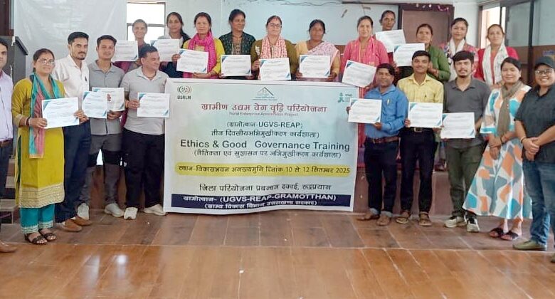 रुद्रप्रयाग,12 सितम्बर। ग्रामोत्थान परियोजना के अंतर्गत क्लस्टर लेवल फेडरेशनों (CLFs) के सहकारिता स्टाफ, पदाधिकारियों एवं बीओडी सदस्यों हेतु आयोजित तीन दिवसीय “Ethics & Good Governance” प्रशिक्षण का सफलतापूर्वक समापन हुआ। प्रशिक्षण में सहायक प्रबंधक (संस्थाएं एवं समावेश), सहायक प्रबंधक (मूल्यांकन एवं अनुश्रवण), आजीविका समन्वयक अगस्त्यमुनि एवं जखोली द्वारा मुख्य प्रशिक्षक के रूप में मार्गदर्शन प्रदान किया गया। प्रतिभागियों को प्रेजेंटेशन, प्रश्नोत्तर सत्र एवं गेमिंग गतिविधियों के माध्यम से सुशासन एवं नैतिक मूल्यों की गहन जानकारी दी गई। इस अवसर पर जिला परियोजना प्रबंधक ने सभी बीओडी सदस्यों, पदाधिकारियों एवं CLF स्टाफ को अपने कार्यों में नैतिकता व सुशासन के सिद्धांतों का पालन करते हुए मॉडल CLF तैयार करने के लिए प्रेरित किया। उन्होंने कहा कि भविष्य में इसी आधार पर सहकारिता और ग्राम संगठनों को और अधिक सशक्त व सक्षम बनाया जाएगा।