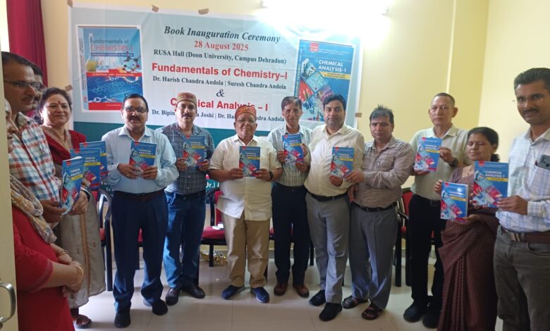 देहरादून, 28 अगस्त। आज बृहस्पतिवार को उच्च शिक्षा के दून विश्वविद्यालय स्थित रूसा सभागार में पुस्तक विमोचन कार्यक्रम का आयोजन किया गया। जिसमें नई शिक्षा नीति 2020 पर आधारित पुस्तकों FUNDAMENTAL OF CHEMISTRY-l and Chemical Analysis -l के लेखक डॉ. हरीश चंद्र अंडोला, सुरेश चंद्र अंडोला एवं डॉ. विपिन चंद्र जोशी द्वारा लिखित पुस्तकों के प्रकाशक कुणाल बुक्स नई दिल्ली द्वारा प्रकाशित, विमोचन समारोह में मुख्य अतिथि प्रो. (डॉ.) एमएसएम रावत पूर्व सलाहकार रूसा एवं कुलपति हेमवती नंदन बहुगुणा गढ़वाल विश्वविद्यालय, अति विशिष्ट अतिथि प्रो. (डॉ.) के.डी. पुरोहित पूर्व सलाहकार रूसा, प्रो. (डॉ.) ए.एस. उनियाल, संयुक्त निदेशक उच्च शिक्षा, डॉ. ममता नैथानी उपनिदेशक उच्च शिक्षा, द्वारा इस समारोह में लेखकों को बधाई और उनके उज्जवल भविष्य की शुभकामनाएं दी। लेखको द्वारा दून विश्वविद्यालय की कुलपति, कुलसचिव, सह कुलसचिव एवं पर्यावरण और अन्य विभागों के डीन एवं हेड प्राध्यापकों और समस्त गैर शैक्षणिक कर्मचारियो के सहयोग हेतु आभार व्यक्त किया गया है। इस अवसर पर कार्यक्रम में उपस्थित बुद्धिजीवी, शिक्षाविद एवं अतिथिगण डॉ प्रमोद डोबरियाल, डॉ विपिन चंद्र चौबे, प्रो. गोविन्द पाठक, डॉ. दीपक कुमार सेमवाल, श्री प्रशांत मेहता, श्री शंकर सिंह भाटिया, श्री जगमोहन सिंह रौतेला, श्री अंकित पांडे, ध्रुव अंडोला, गुंजन अंडोला आदि उपस्थित थे l इस अवसर पर पुस्तकों के प्रकाशक श्री प्रेम सिंह बिष्ट कुणाल बुक्स नई दिल्ली द्वारा लेखकों को बधाई व शुभकामनाएं दी गई। समस्त लेखकों द्वारा पूर्व राज्यपाल श्री भगत सिंह कोशियारी, कुलपति, कुमाऊं विश्वविद्यालय, कुलपति पंतनगर विश्वविद्यालय, कुलपति, सोबन सिंह जीना विश्वविद्यालय तथा कुलपति, वीरचंद्र सिंह गढ़वाली, श्रीदेव सुमन विश्वविद्यालय,उत्तराखंड मुक्त विश्वविद्यालय एवं पूर्व समस्त कुलपति, प्रो. (डॉ ) दुर्गेश पंत महानिदेशक यूकॉस्ट UCOST, प्रो. (डॉ ) राजाराम बल मुख्य वैज्ञानिक आईआईपी देहरादून, कुलसचिव दून विश्वविद्यालय, डॉ. अजीत कुमार कर्नाटक (कुलपति-महाराणा प्रताप कृषि व प्रौद्योगिकी विश्वविद्यालय , उदयपुर राजस्थान), श्री नरेंद्र लाल जी उपकुलसचिव उत्तराखंड तकनीकी विश्वविद्यालय, डॉ राजदीप मलिक गुरुकुल कांगड़ी यूनिवर्सिटी हरिद्वार, क्रेटिव उत्तराखण्ड मेरा पहाड मेरी पहचान हेम पंत, डाॅ. शैलेश उप्रेती समस्त टीम, का आभार प्रकट किया गया। मुख्य वक्ताओं द्वारा कहा गया कि नई शिक्षा नीति 2020 पर लिखित पुस्तके छात्रों के लिए सहयोगी व लाभप्रद होगी।
