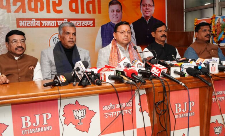 देहरादून। मुख्यमंत्री पुष्कर सिंह धामी ने बलवीर रोड स्थित भारतीय जनता पार्टी कार्यालय में आयोजित मीडिया प्रेस वार्ता के दौरान केंद्रीय बजट 2026–27 को विकसित भारत @2047 और आत्मनिर्भर उत्तराखंड की दिशा में एक ऐतिहासिक एवं दूरदर्शी बजट बताया। उन्होंने कहा कि यह बजट देश की आत्मा, आत्मविश्वास और विकासशील सोच को मजबूती प्रदान करता है। मुख्यमंत्री ने प्रधानमंत्री नरेंद्र मोदी एवं केंद्रीय वित्त मंत्री श्रीमती निर्मला सीतारमण का आभार व्यक्त करते हुए कहा कि बजट में पूंजीगत व्यय में की गई बढ़ोतरी से दीर्घकालिक विकास की मजबूत नींव रखी गई है। यह बजट आत्मनिर्भर भारत के संकल्प को साकार करने के साथ-साथ भारत की रणनीतिक स्वायत्तता और संप्रभुता को भी सुदृढ़ करता है। मुख्यमंत्री ने कहा कि बजट के तीन प्रमुख स्तंभ—संतुलित एवं समावेशी विकास, वंचित वर्गों का क्षमता निर्माण और सबका साथ-सबका विकास-दूरस्थ के माध्यम से सीमांत क्षेत्रों, गांवों, महिलाओं, युवाओं, बुजुर्गों, बच्चों और वंचित वर्गों सभी के समग्र उत्थान का स्पष्ट मार्ग प्रशस्त करते हैं। उन्होंने बताया कि टियर-2 और टियर-3 शहरों के विकास से उत्तराखंड के देहरादून, हरिद्वार और हल्द्वानी जैसे शहरों को विशेष लाभ मिलेगा।