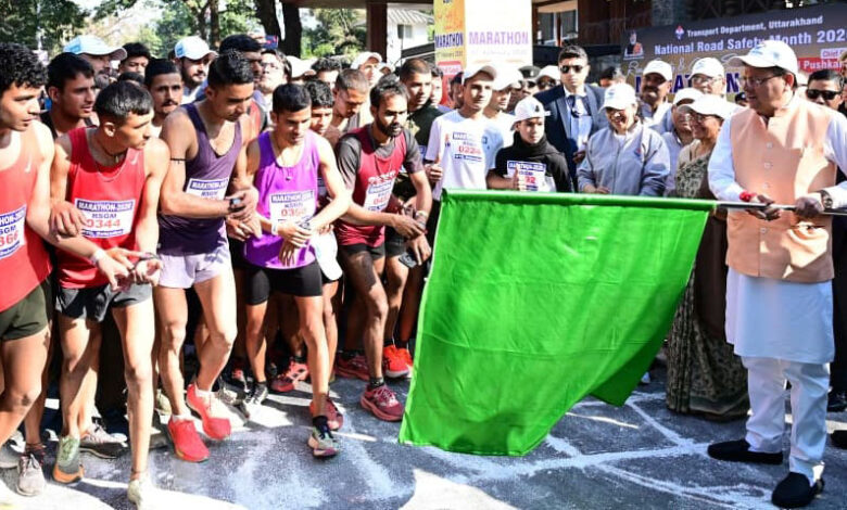 देहरादून 17 फरवरी। मुख्यमंत्री पुष्कर सिंह धामी ने मंगलवार को कैंट रोड, देहरादून से सड़क सुरक्षा जागरूकता एवं पर्यावरण संरक्षण के उद्देश्य से आयोजित 5 किलोमीटर दौड़ का फ्लैग ऑफ किया। विभिन्न आयु वर्गों के बड़ी संख्या में प्रतिभागियों ने इस दौड़ में भाग लिया। इस अवसर पर मुख्यमंत्री श्री धामी ने सभी प्रतिभागियों को सड़क सुरक्षा नियमों के पालन एवं पर्यावरण संरक्षण के प्रति जागरूकता बढ़ाने की शपथ भी दिलाई। मुख्यमंत्री ने कहा कि यातायात के नियमों का पालन करना एवं पर्यावरण की रक्षा प्रत्येक नागरिक का कर्तव्य है। सड़क सुरक्षा एवं पर्यावरण संरक्षण की दिशा में सरकार द्वारा निरंतर प्रयास किए जा रहे हैं। इस अवसर पर विधायक श्री खजान दास, श्रीमती सविता कपूर एवं परिवहन विभाग के अधिकारी उपस्थित थे।
