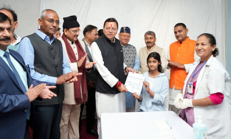 प्रधानमंत्री उज्ज्वला योजना से करोड़ों माताओं और बहनों को चूल्हे के धुएँ से मुक्ति मिली है। मुख्यमंत्री ने कहा कि उत्तराखण्ड सरकार भी ‘स्वस्थ उत्तराखण्ड, समृद्ध उत्तराखण्ड’ के अपने सपने को साकार करने के लिए प्रदेश में स्वास्थ्य सेवाओं के विस्तार और सुदृढ़ीकरण पर निरंतर कार्य कर रही है। आयुष्मान योजना के अंतर्गत राज्य में अब तक करीब 61 लाख आयुष्मान कार्ड वितरित किए गए हैं, जिसके माध्यम से प्रदेश के लाखों मरीजों को निःशुल्क उपचार का लाभ मिल रहा है। राज्य के प्रत्येक जिले में मेडिकल कॉलेज स्थापित किए जा रहे हैं। उन्होंने बताया कि राज्य में पाँच मेडिकल कॉलेज पहले से ही संचालित हैं, जबकि दो और मेडिकल कॉलेजों का निर्माण कार्य भी प्रगति पर है। मुख्यमंत्री ने बताया कि देहरादून, हल्द्वानी और श्रीनगर मेडिकल कॉलेजों में सुपर स्पेशियलिटी विभाग भी स्थापित किए गए हैं, जहाँ कार्डियोलॉजी, न्यूरोसर्जरी और यूरोलॉजी जैसी अत्याधुनिक चिकित्सा सुविधाएँ उपलब्ध कराई जा रही हैं। हल्द्वानी में राज्य के प्रथम आधुनिक कैंसर संस्थान का निर्माण कार्य भी प्रगति पर है।