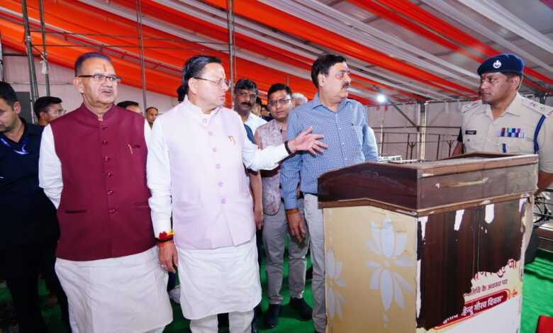 उन्होंने कार्यक्रम स्थल पर सुरक्षा, यातायात प्रबंधन, पार्किंग व्यवस्था, पेयजल, विद्युत आपूर्ति, स्वच्छता एवं अन्य आधारभूत सुविधाओं की तैयारियों की अधिकारियों से जानकारी ली। उन्होंने अधिकारियों को निर्देश दिए कि सभी व्यवस्थाएं समयबद्ध एवं उच्च गुणवत्ता के साथ सुनिश्चित की जाएं, ताकि कार्यक्रम में आने वाले आमजन को किसी प्रकार की असुविधा न हो। मुख्यमंत्री ने विशेष रूप से सुरक्षा व्यवस्था को चाक-चौबंद रखने के निर्देश देते हुए कहा कि सभी एजेंसियों के बीच समन्वय स्थापित कर कार्य किया जाए। उन्होंने यातायात प्रबंधन की सुव्यवस्थित योजना तैयार करने एवं आपातकालीन सेवाओं की त्वरित उपलब्धता सुनिश्चित करने पर भी जोर दिया। जसवंत ग्राउंड में मंच, दर्शक दीर्घा एवं अन्य आवश्यक व्यवस्थाओं के संबंध में अधिकारियों से विस्तृत जानकारी लेते हुए मुख्यमंत्री ने कहा कि कार्यक्रम की गरिमा के अनुरूप सभी तैयारियां पूरी की जाएं। उन्होंने साफ-सफाई एवं सौंदर्यीकरण कार्यों को प्राथमिकता देने के निर्देश भी दिए। मुख्यमंत्री ने मां डाट काली मंदिर में पूजा-अर्चना कर प्रदेश की सुख-समृद्धि एवं कार्यक्रम की सफलता के लिए प्रार्थना की। इस अवसर पर कैबिनेट मंत्री श्री गणेश जोशी, राज्यसभा सांसद श्री महेंद्र भट्ट, सचिव श्री शैलेश बगौली, गढ़वाल कमिश्नर श्री विनय शंकर पाण्डेय, आईजी गढ़वाल श्री राजीव स्वरूप, जिलाधिकारी देहरादून श्री सविन बंसल, अपर सचिव श्री बंशीधर तिवारी, एसएसपी देहरादून श्री प्रमेन्द्र डोभाल एवं विभिन्न विभागों के अधिकारी मौजूद थे।